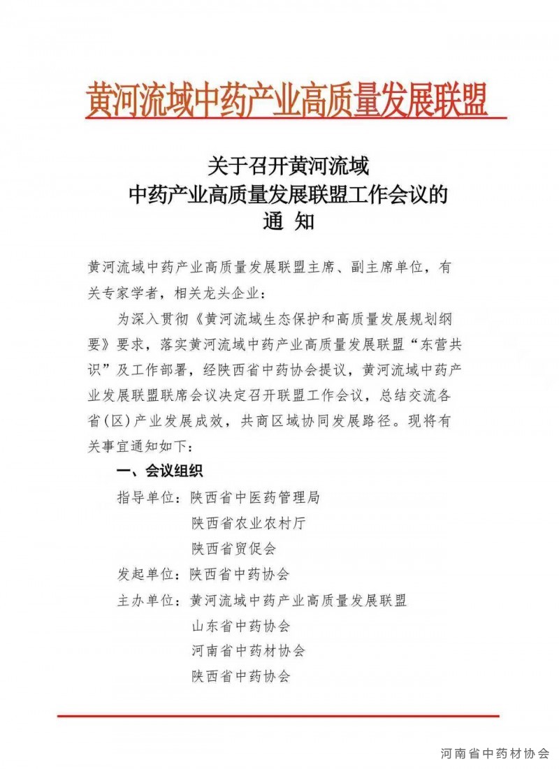 关于召开黄河流域中药产业高质量发展联盟工作会议的通知
